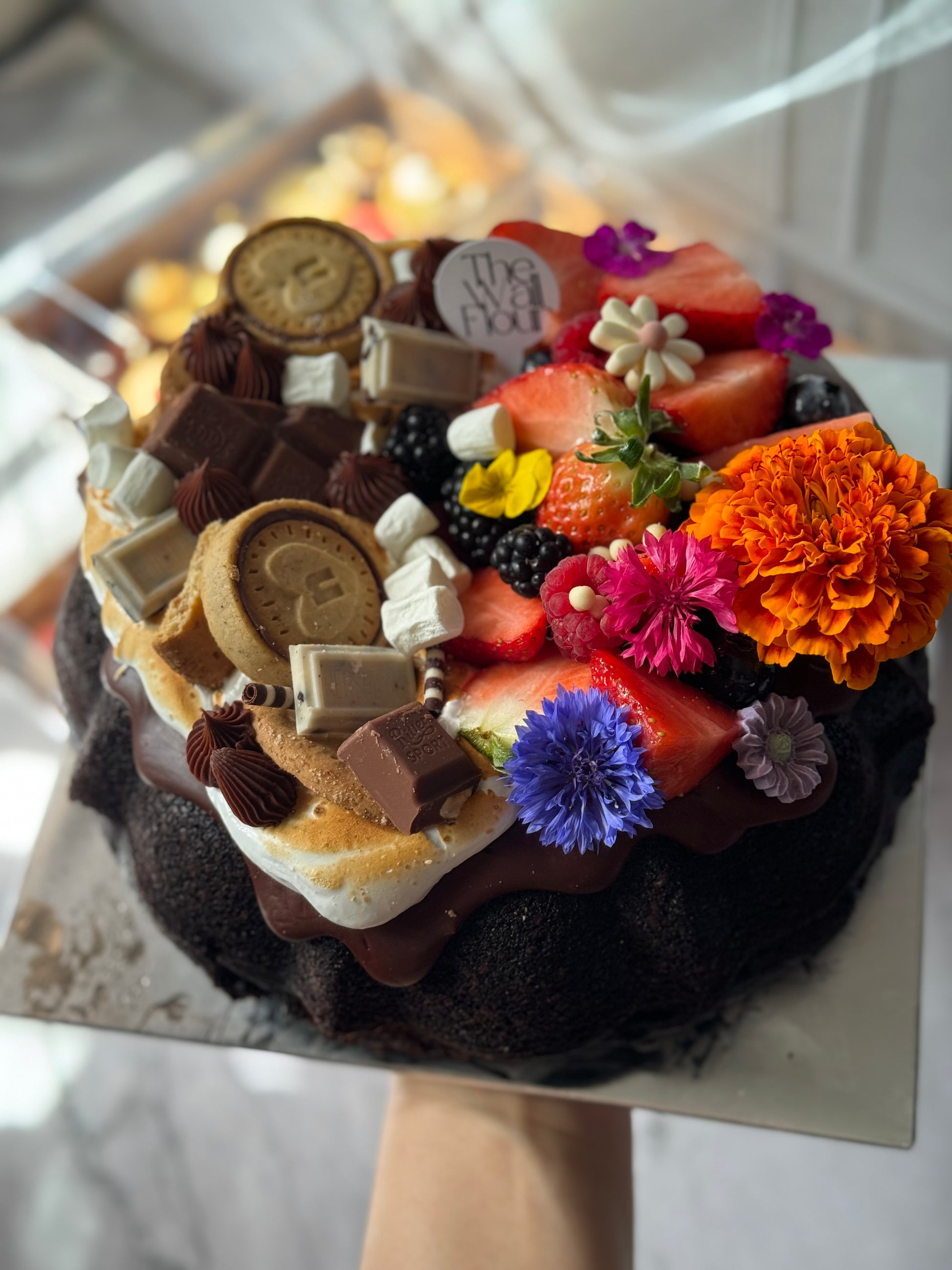 Order: 10” belgian choc bundt (Berry loaded) with giftbox/ribbon/mirror plaque $85 + $2 (PLAQUE)